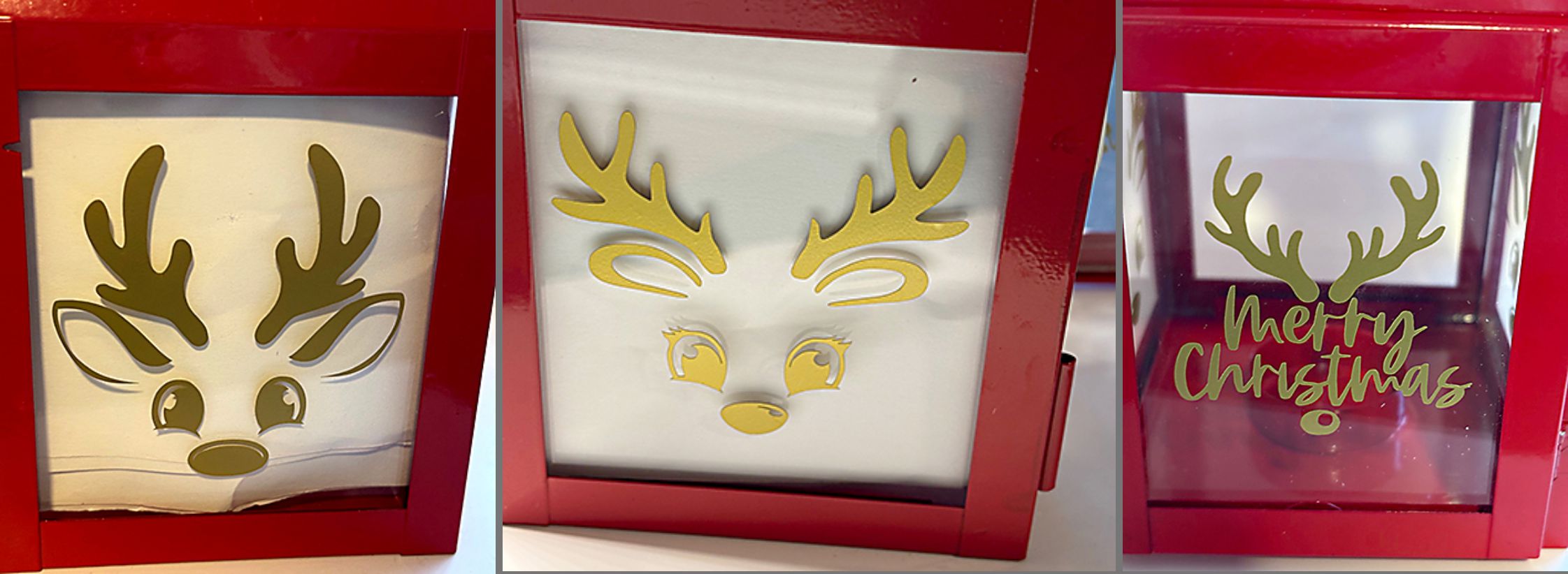 - Reinsdyr-ansikt på 2 av sidene, merry christmas med gevir på front